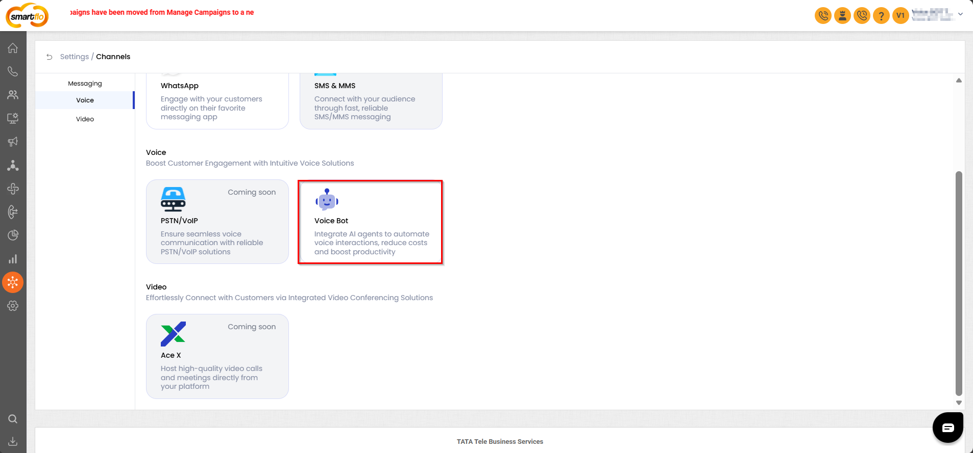 - Go to Settings → Channels → Voice Bot
