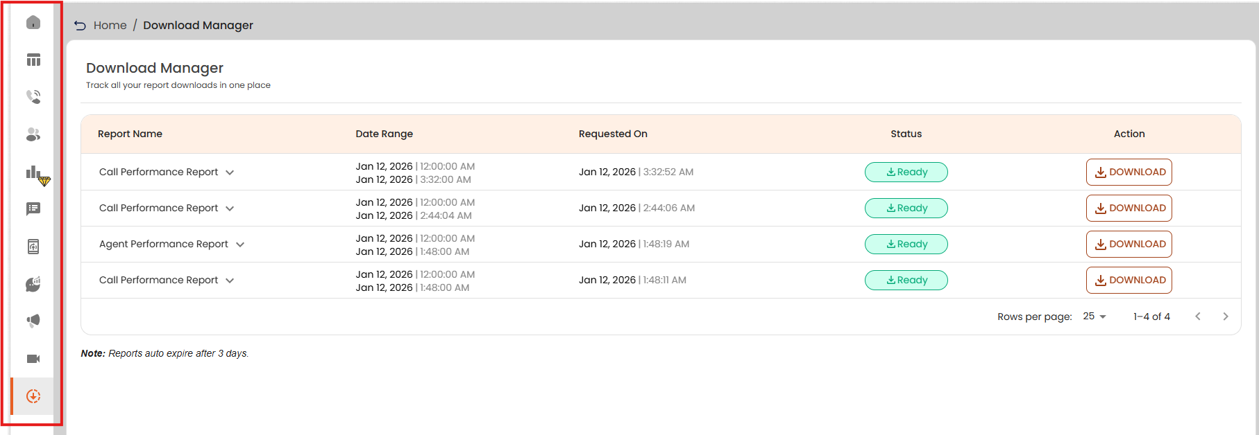 The Download Manager ensures a streamlined, transparent, and user-friendly experience for managing all analytics report downloads within Smartflo.