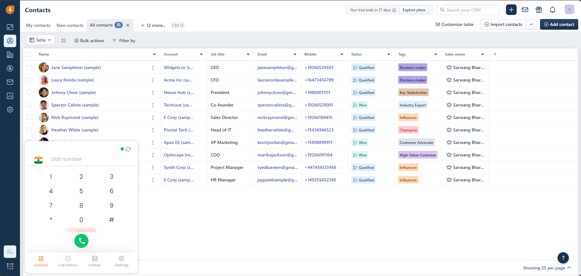 - You have successfully integrated Smartflo with Freshsales CRM and are ready to make calls.