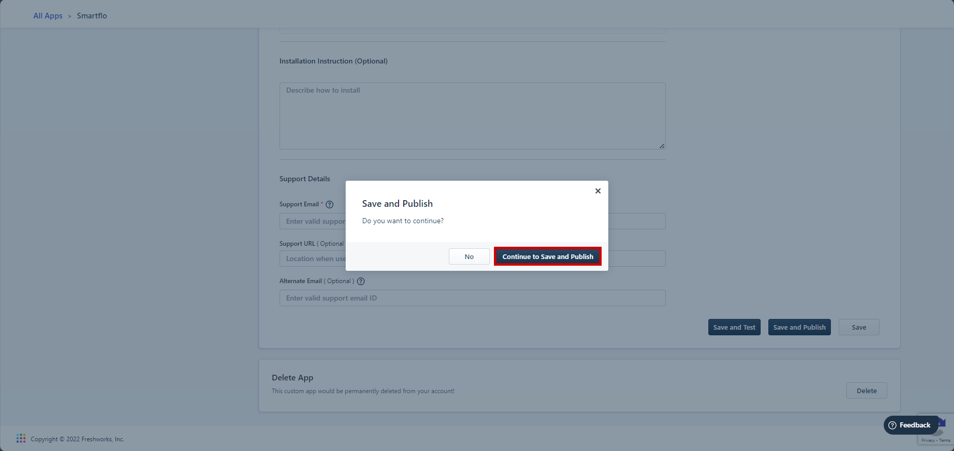 When prompted to proceed ahead, click on Continue to Save and Publish.
