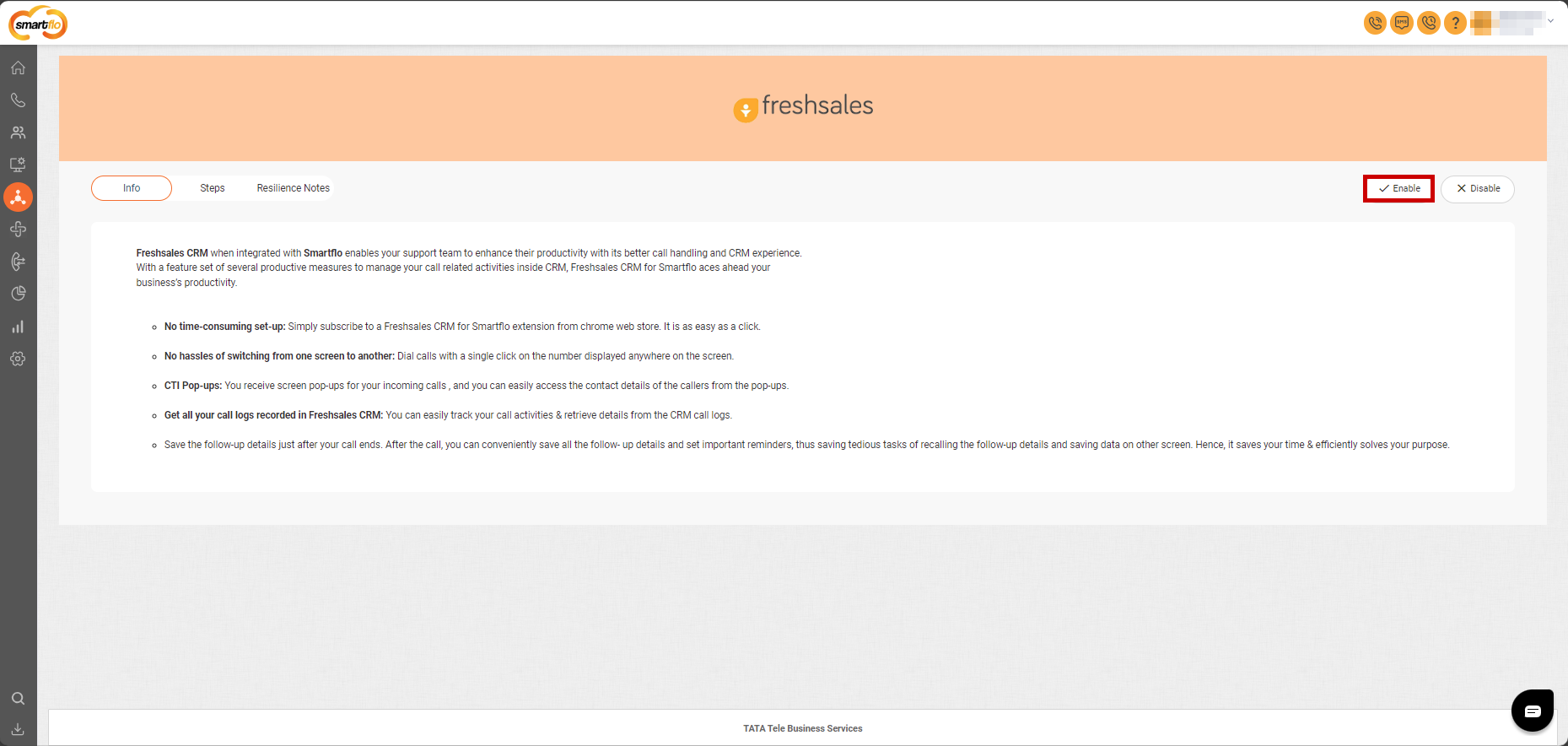 Follow the below-mentioned steps to successfully integrate your Freshsales CRM with Smartflo.