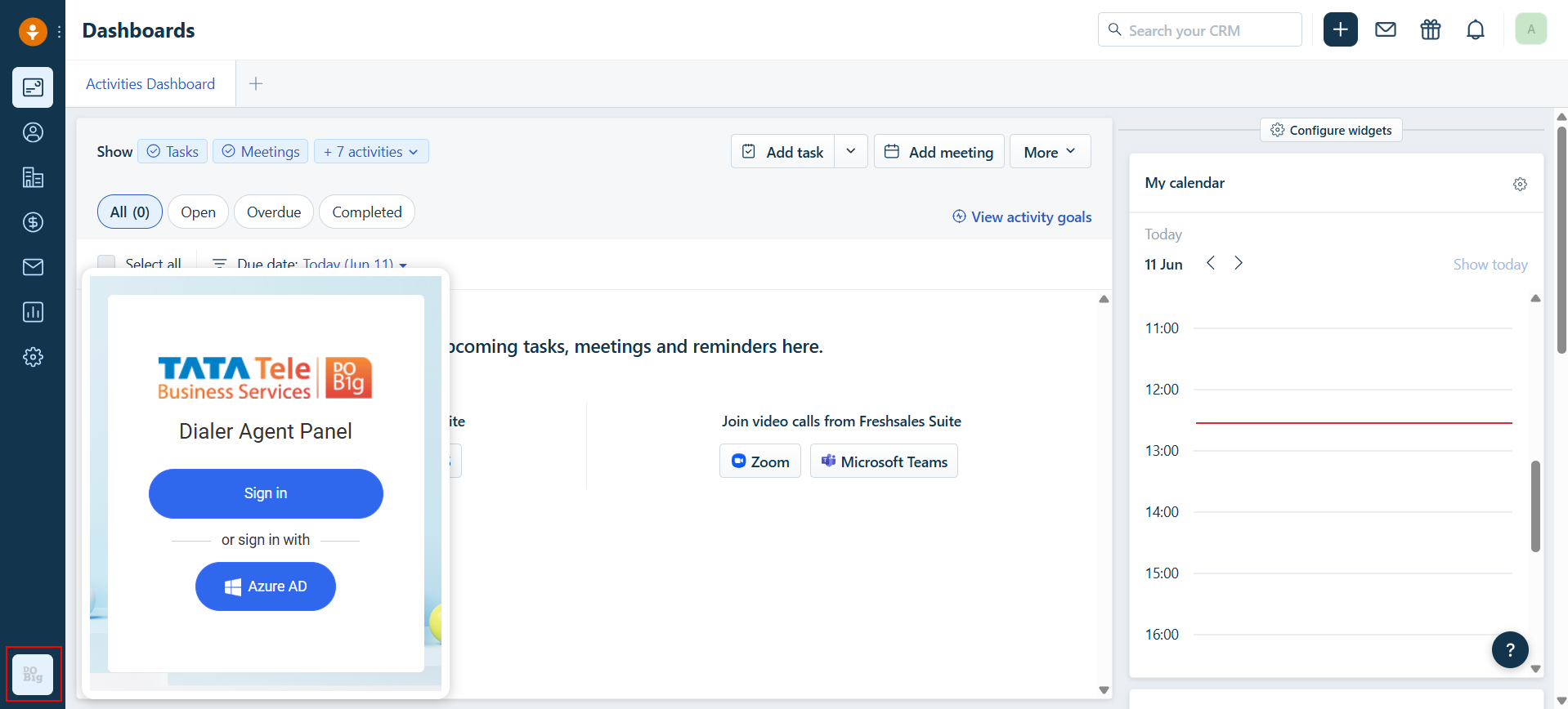 From the left-hand menu, open the Dashboard tab to access the CRM dashboard.