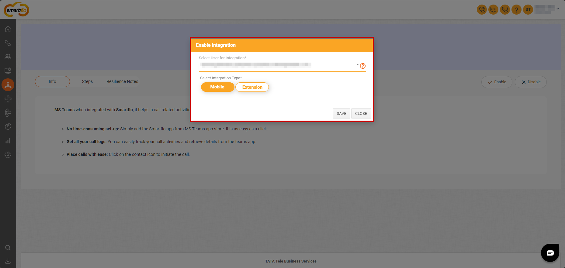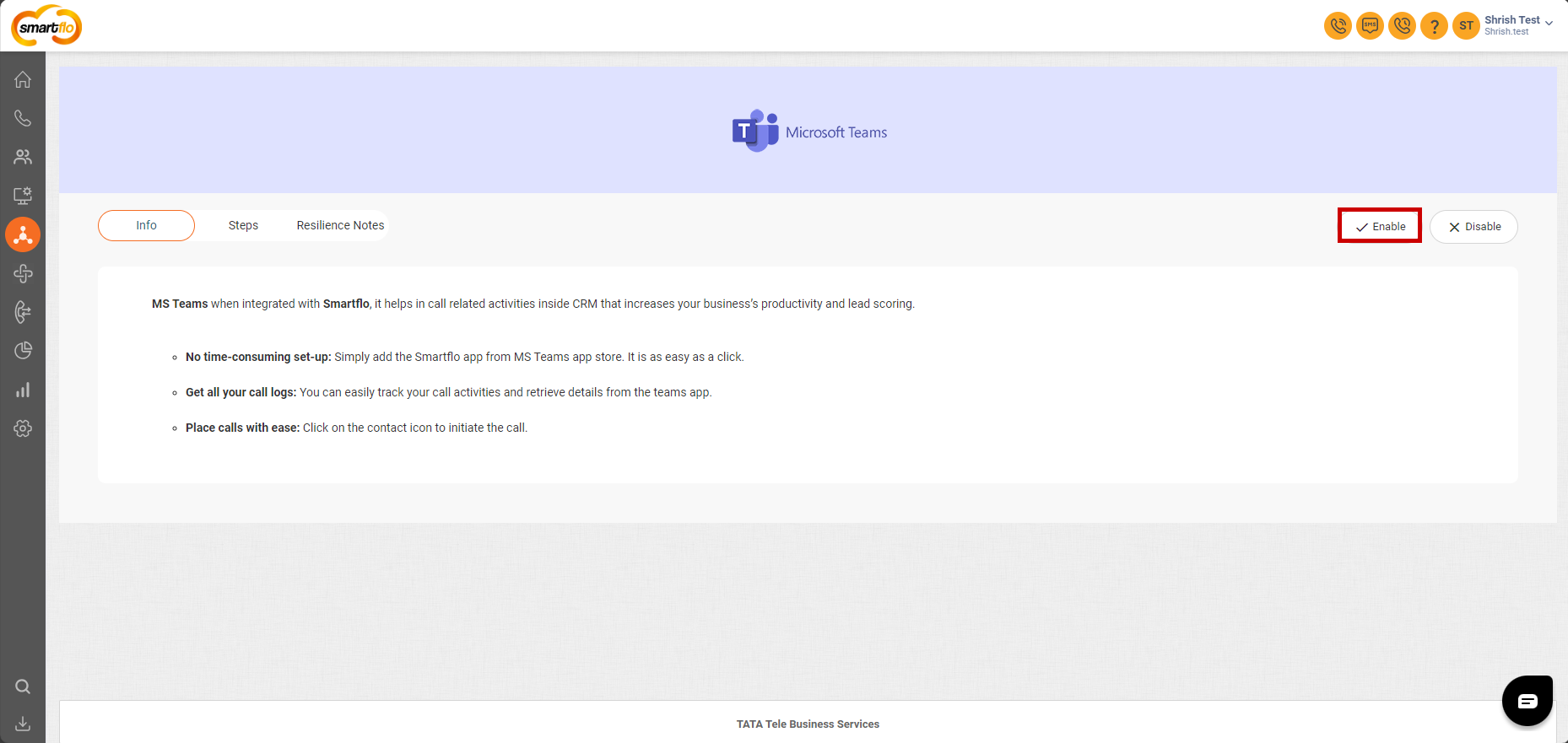 You have successfully integrated your Smartflo Account with MS Teams. Start using your Application.
