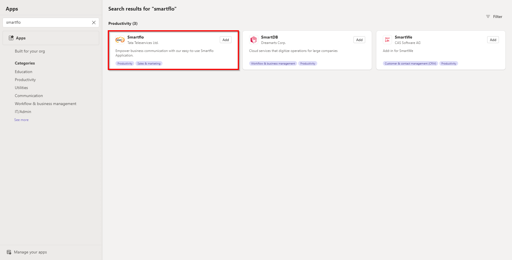 - Open your Smartflo Application on MS Teams and log in using your user credentials.