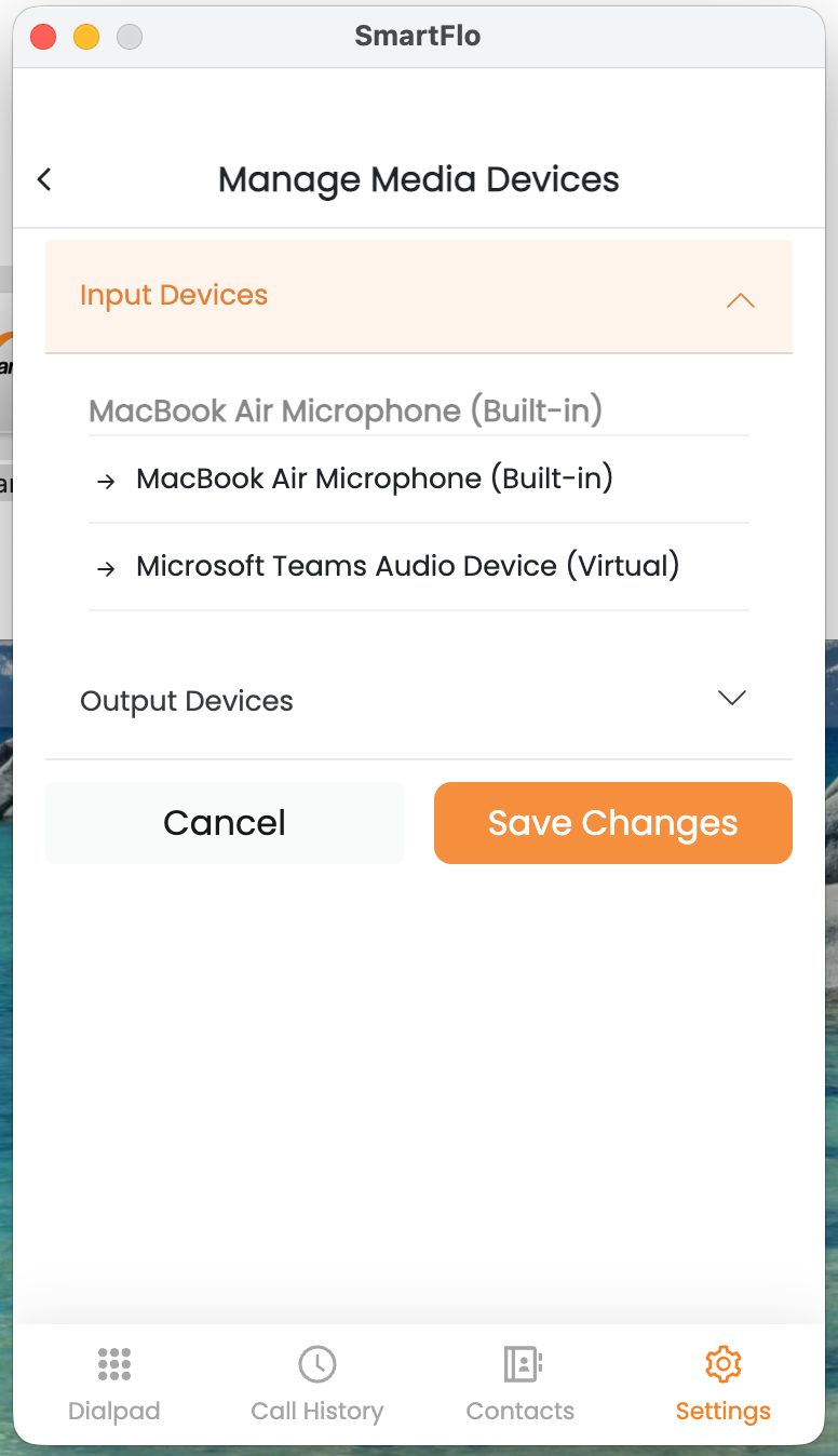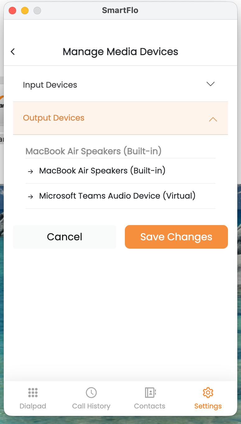 Manage Media Devices: Here, you can select the input and output devices (e.g., microphone and speakers) to be used during calls.