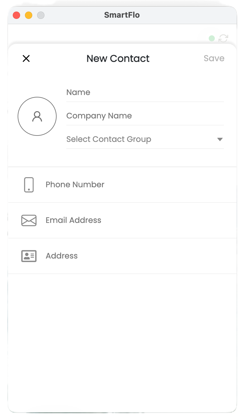 - Enter the name, company name (optional), and select the contact group where it should be added.